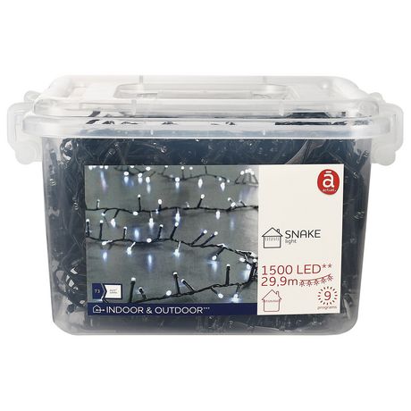 Illuminez votre sapin de Noël avec cette guirlande lumineuse de 30m. Équipée de 1500 LED blanc froid et de 9 fonctions, cette guirlande lumineuse s'allume et change d'éclairage au gré de vos envies. Facile à installer grâce à sa longueur et prise secteur, cette guirlande peut se placer dans un vase pour en faire un véritable objet de décoration.