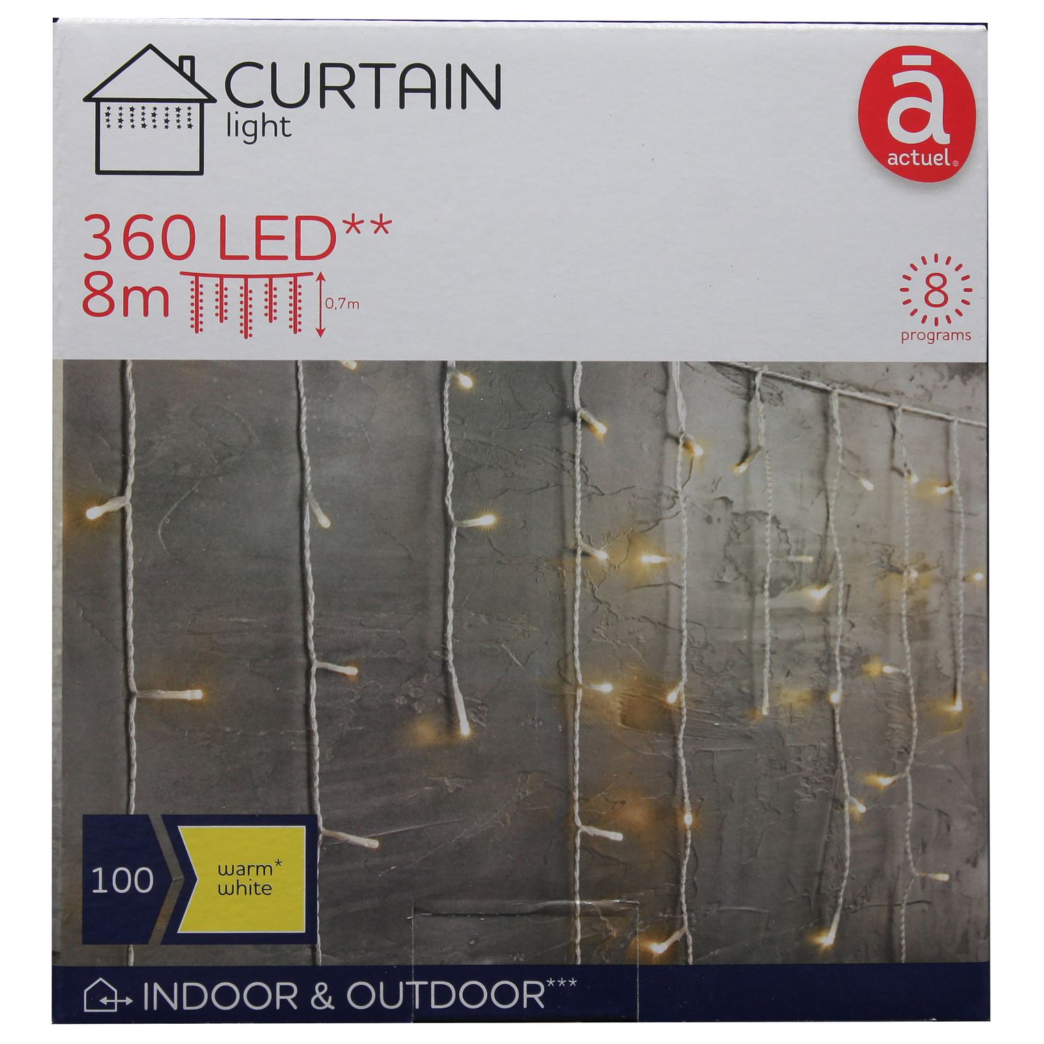 Grâce à cette guirlande extérieure tombante de 360 LED blanc chaud, vous disposez d'une guirlande décorative lumineuse pour votre extérieure par branchement secteur. La guirlande s'étend sur 8 mètres d'illumination + 5 mètres pour le branchement.