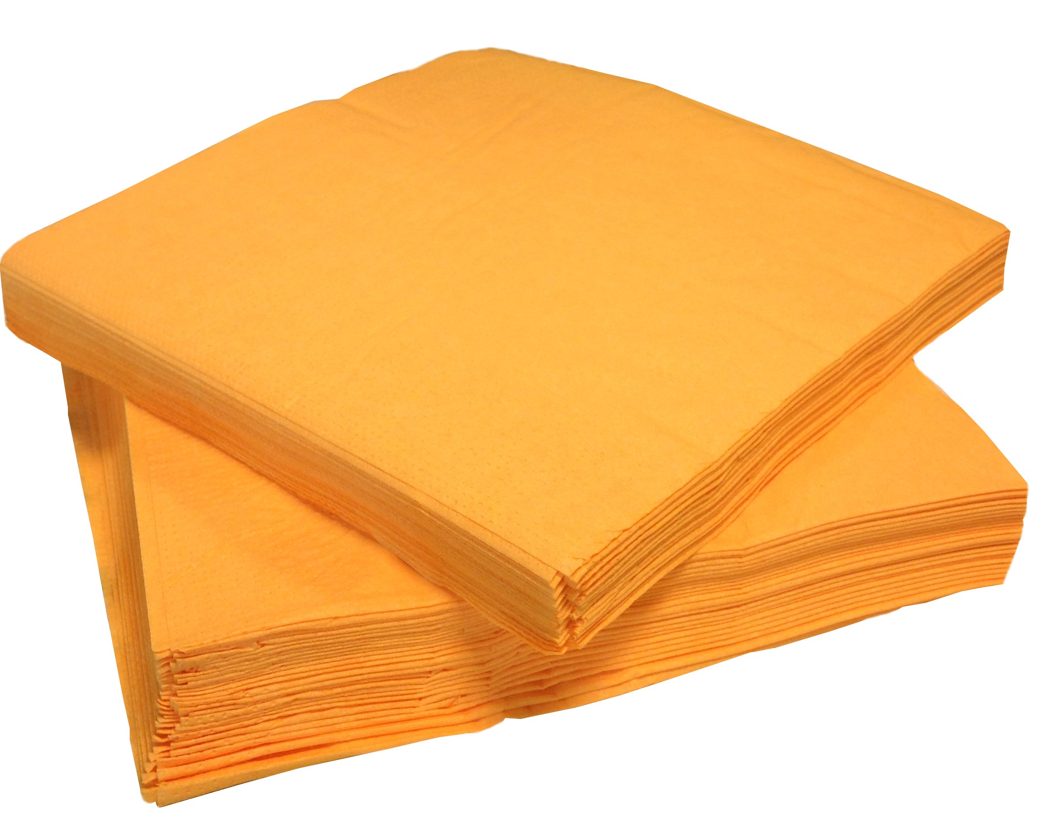 Lot de 100 serviettes orange 33 cm, 2 plis.
