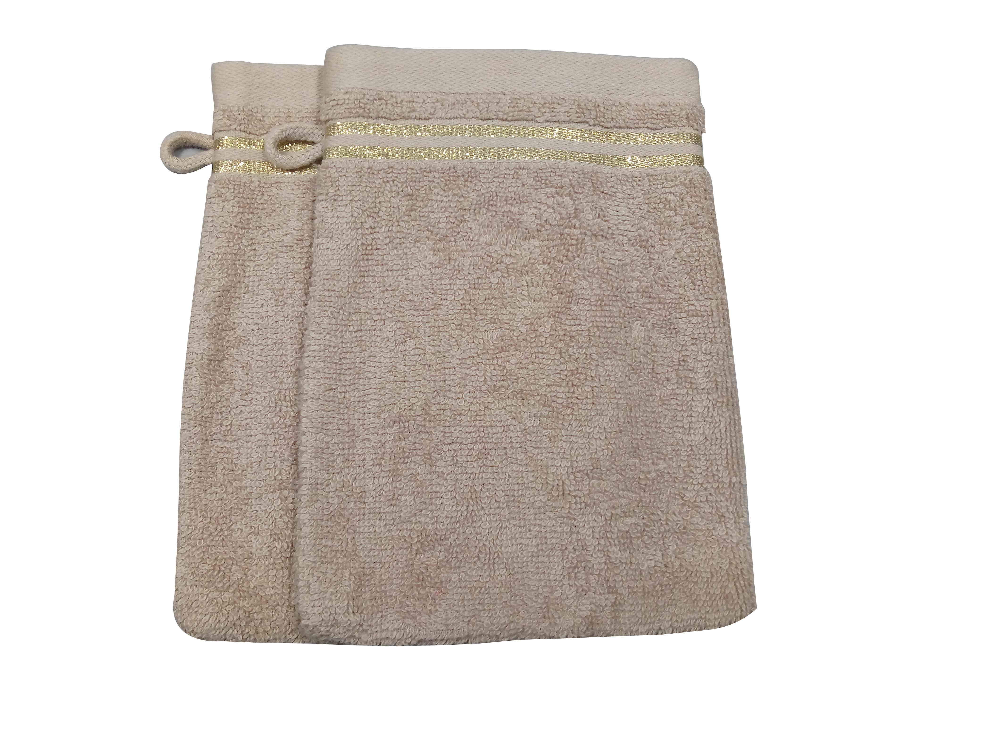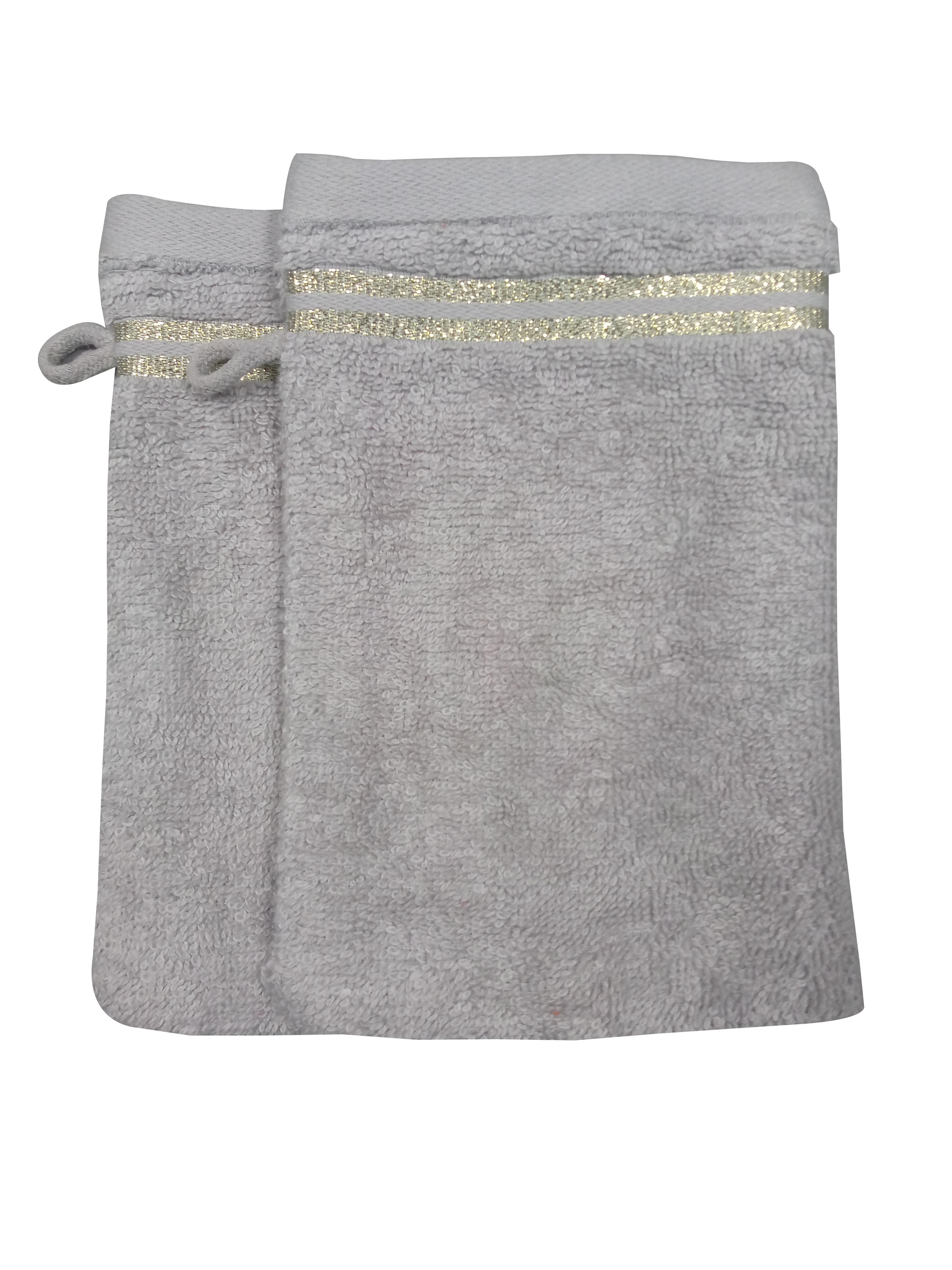 Lot de 2 gants de toilette uni en coton liteau Lurex 500G