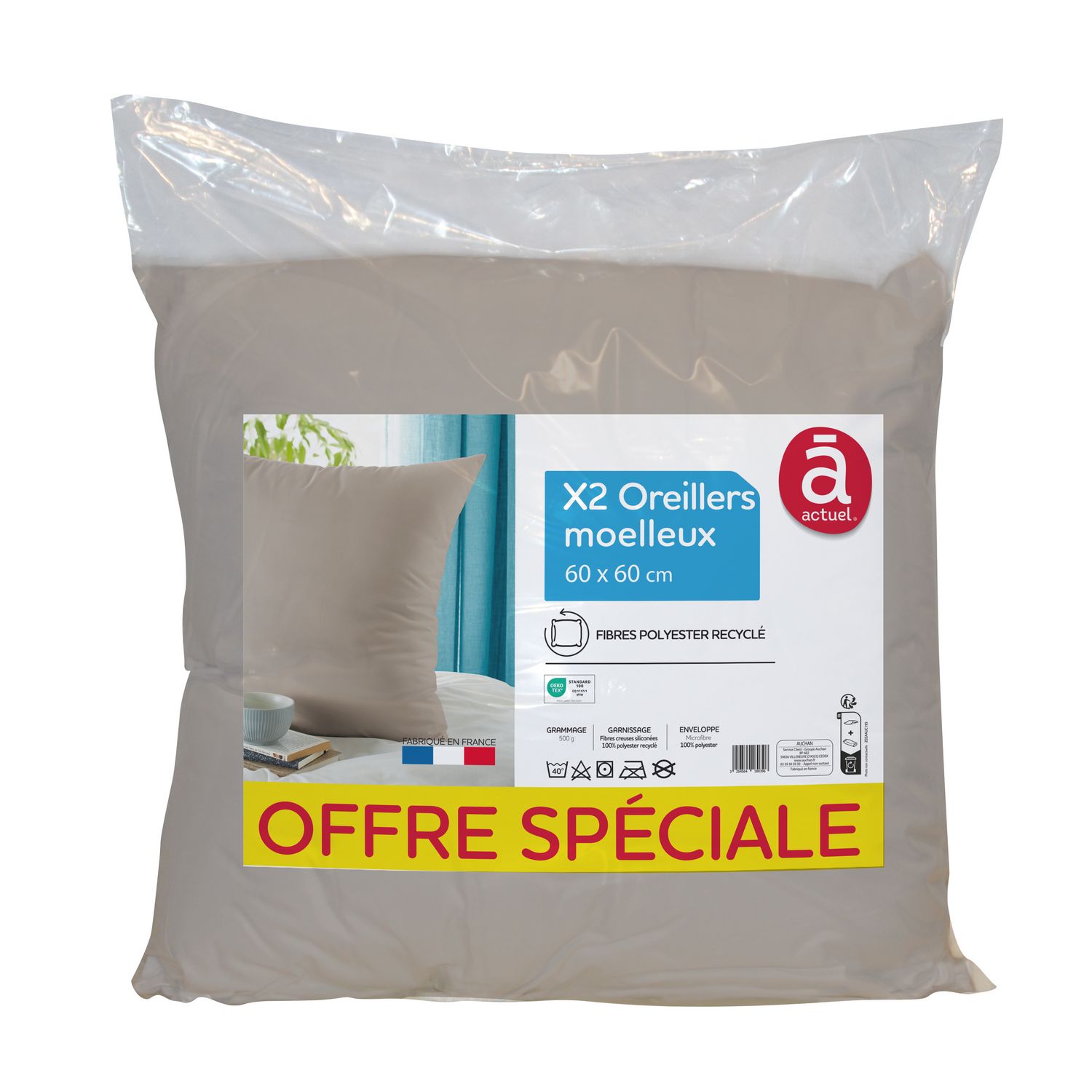 Lot de 2 oreillers couleur 500g/m²