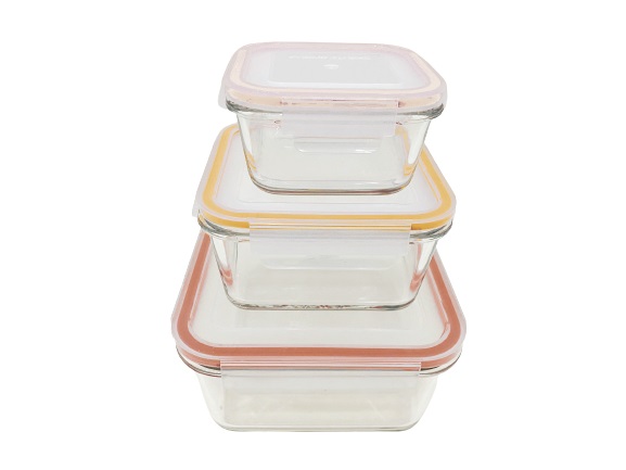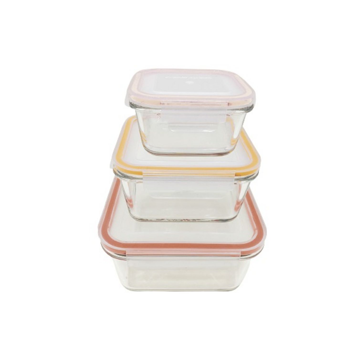 Lot de 3 boites de conservation carrée en verre de borosilicate