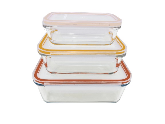 Lot de 3 boites de conservation rectangulaire en verre de borosilicate