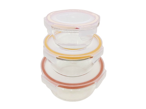 Lot de 3 boites de conservation ronde en verre de borosilicate