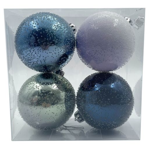 Lot de 4 boules de Noël en plastique bleu 8 cm