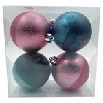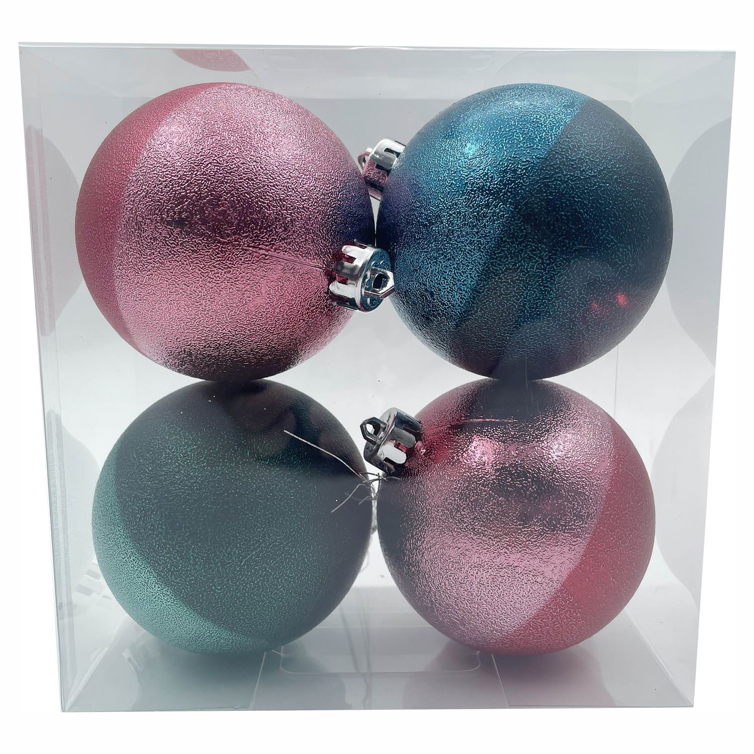 Lot de 4 boules de Noël en plastique en relief 8 cm