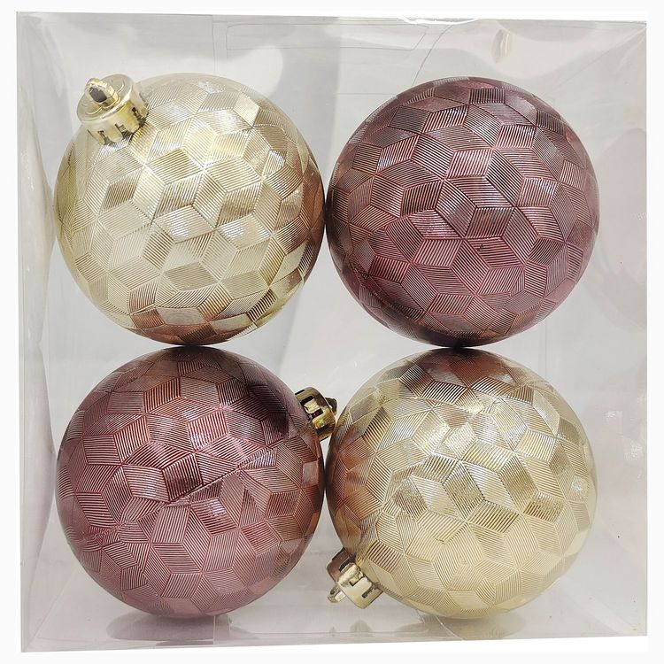 Lot de 4 boules de Noël en plastique gravé 8 cm