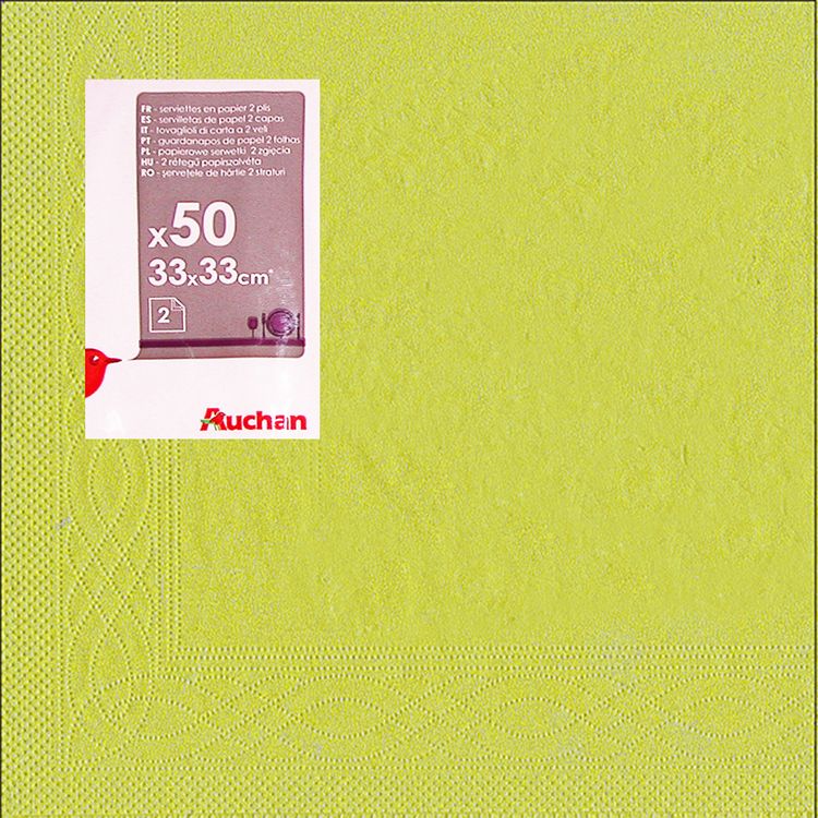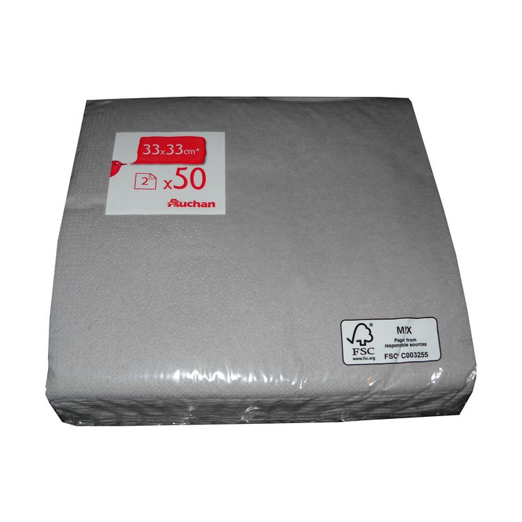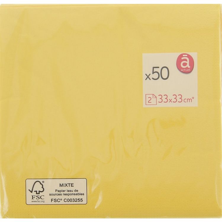 Lot de 50 serviettes carrées 2 plis 33 cm