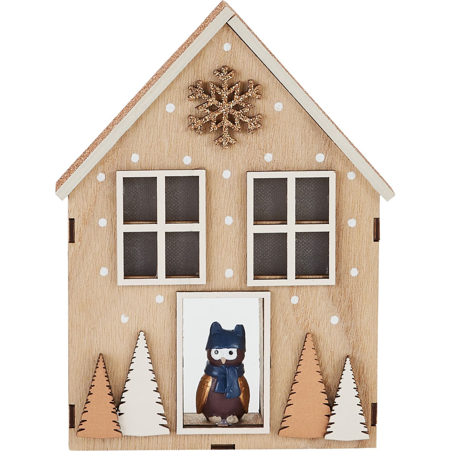 Cette petite maison en bois est idéale pour un coin de cheminé ou pour mettre sur une table. Elle possède des LED à l'intérieur, pour un bel éclairage le soir et un bel effet cosy. Taille du produit : 14,5 x 3 x 19 cm.