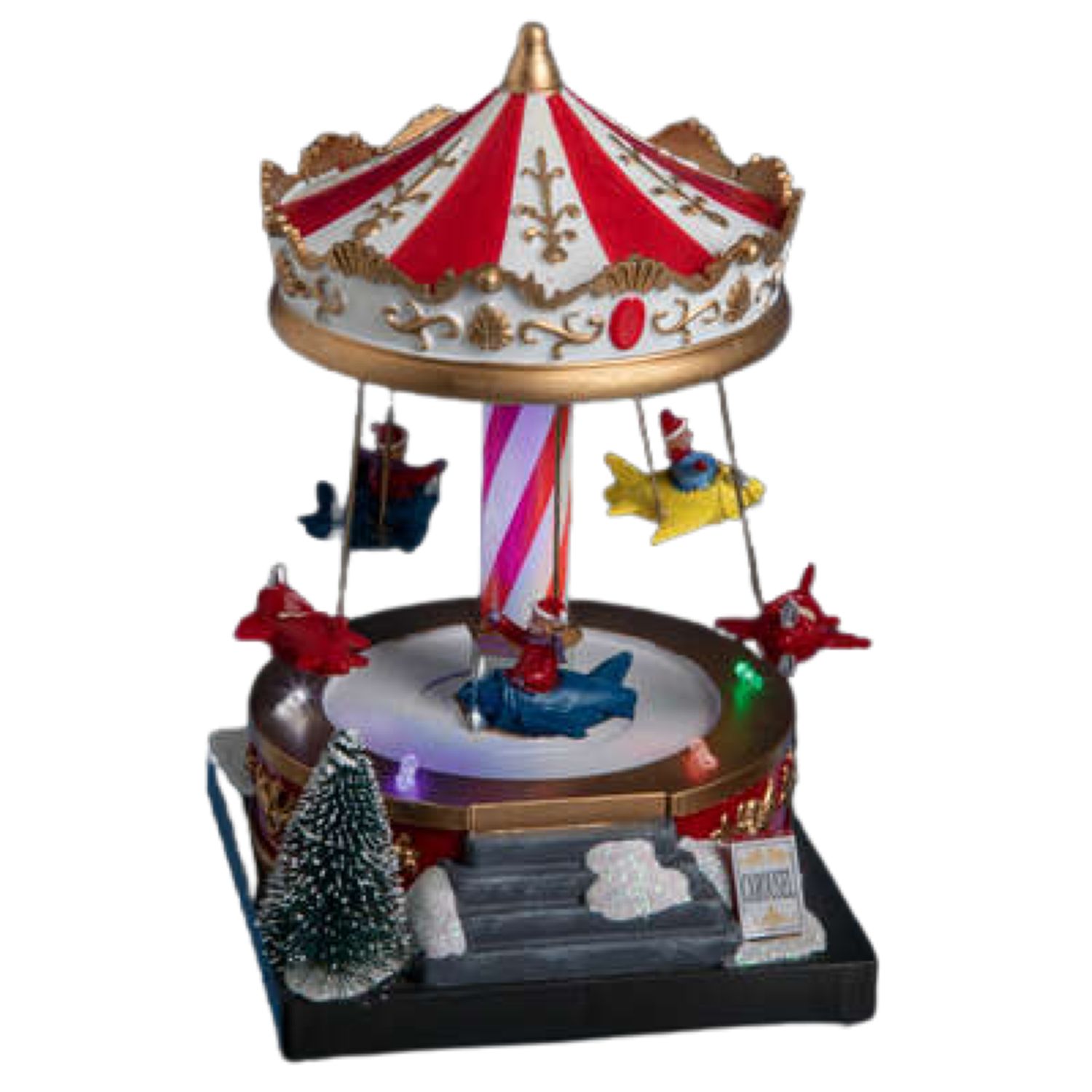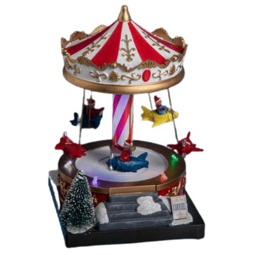 Informations Techniques : Dimensions : L. 13,5 x l. 14 x H. 19 cm Matière : PVC Spécificités : Pratique & Utile Village de Noël Manège avec Avions dans Fête Foraine 8 Musiques de Noël Fonctions : Animée, Musicale & Lumineuse Alimentation : Piles (3 x AA non incluses) Ampoules : 4 LEDs de coloris Mu