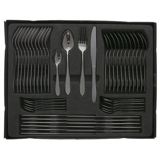 Habillez vos tables de cette magnifique ménagère au design raffiné. Composée de 48 couverts. Fourchettes, couteaux, cuillère à soupe et cuillère à café. Compatible lave - vaisselle.