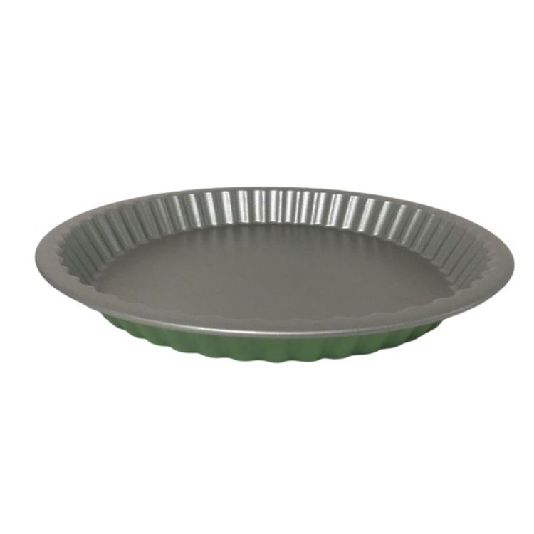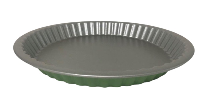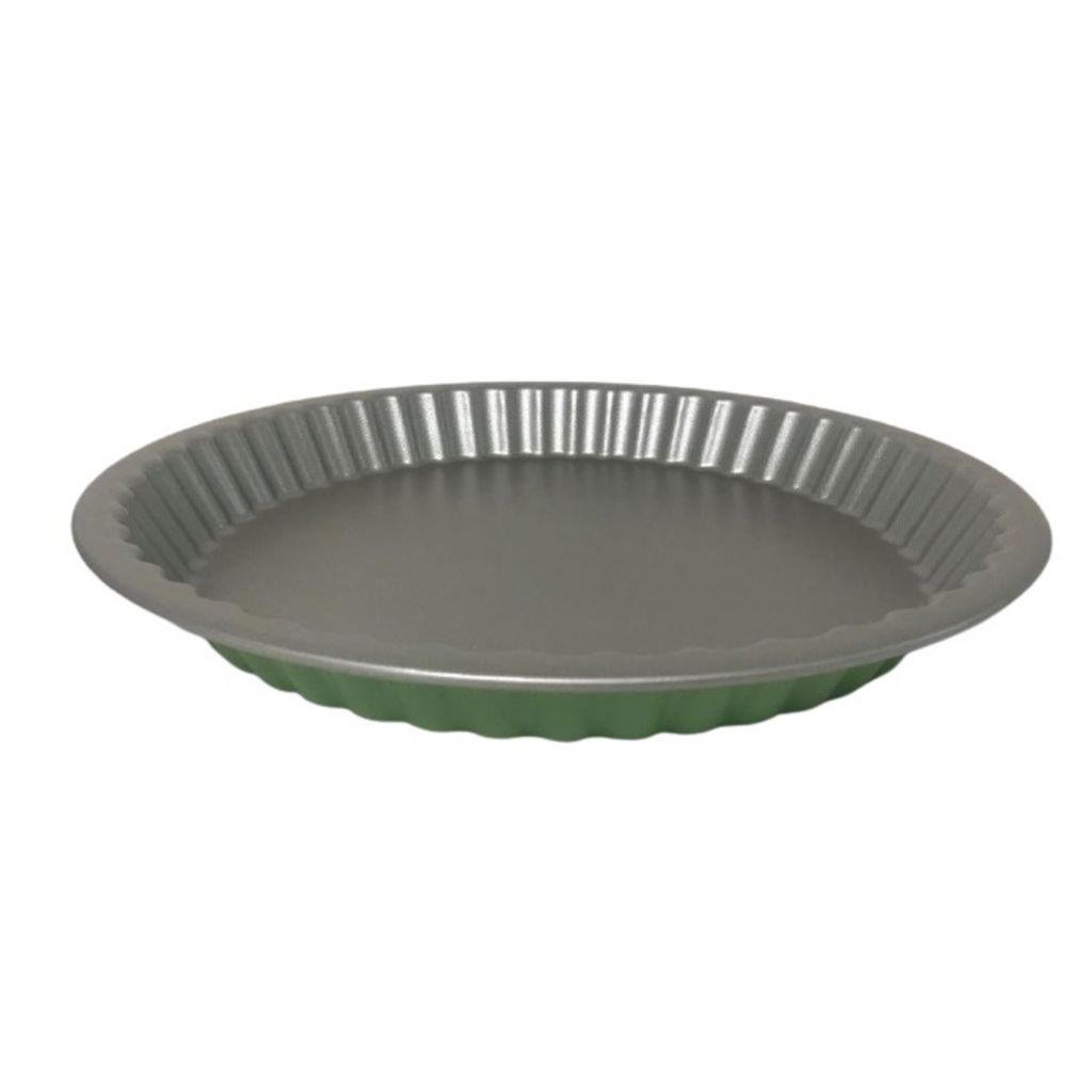 Préparez de délicieuses tarte à vos proches grâce à ce moule à tarte 30cm en aluminium recyclé, intérieur gris et extérieur vert. Revêtement intérieur antiadhésif.