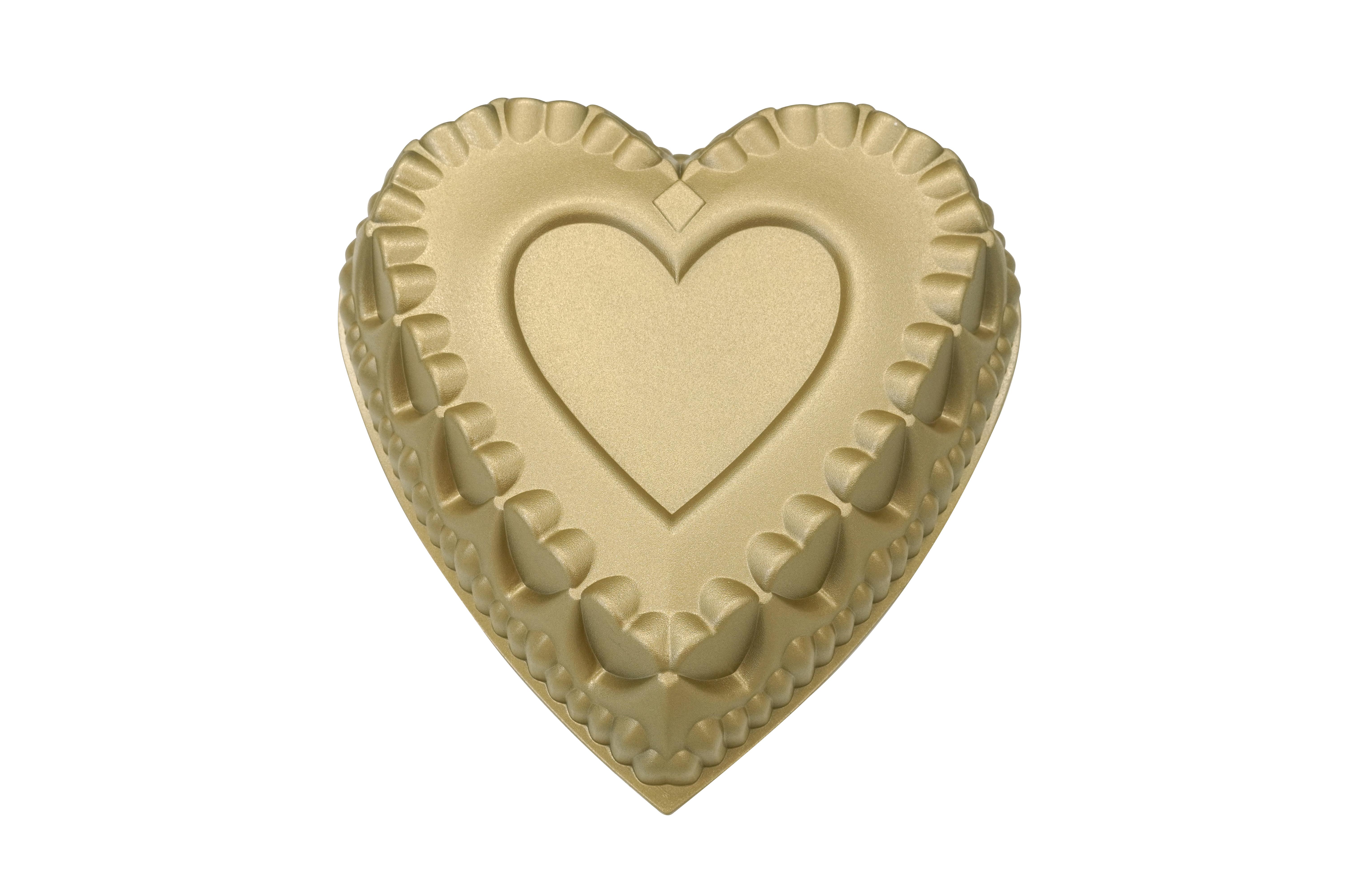 Moule cœur 31cm en fonte d'aluminium doré. Revêtement intérieur antiadhésif afin d'éviter que les aliments restent accrochés. Compatible au lave-vaisselle.