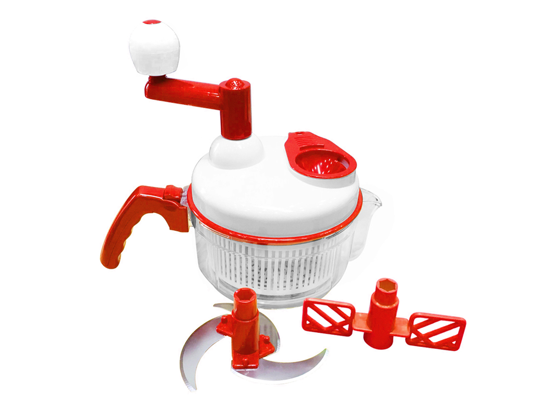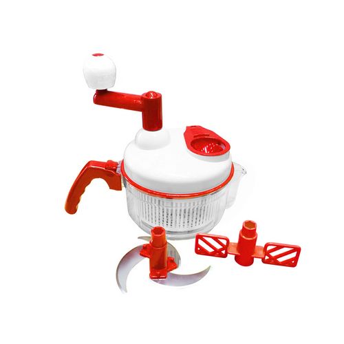 Optimisez la place dans votre cuisine avec cet ustensile multifonctions : hâchoir, batteur à oeufs et essoreuse à salade. Ce moulin vous permettra de hâcher efficacement et simplement légumes, herbes et viandes, essorer votre salade et battre vos oeufs sans effort grâce à la manivelle rotative. Nettoyage facile.