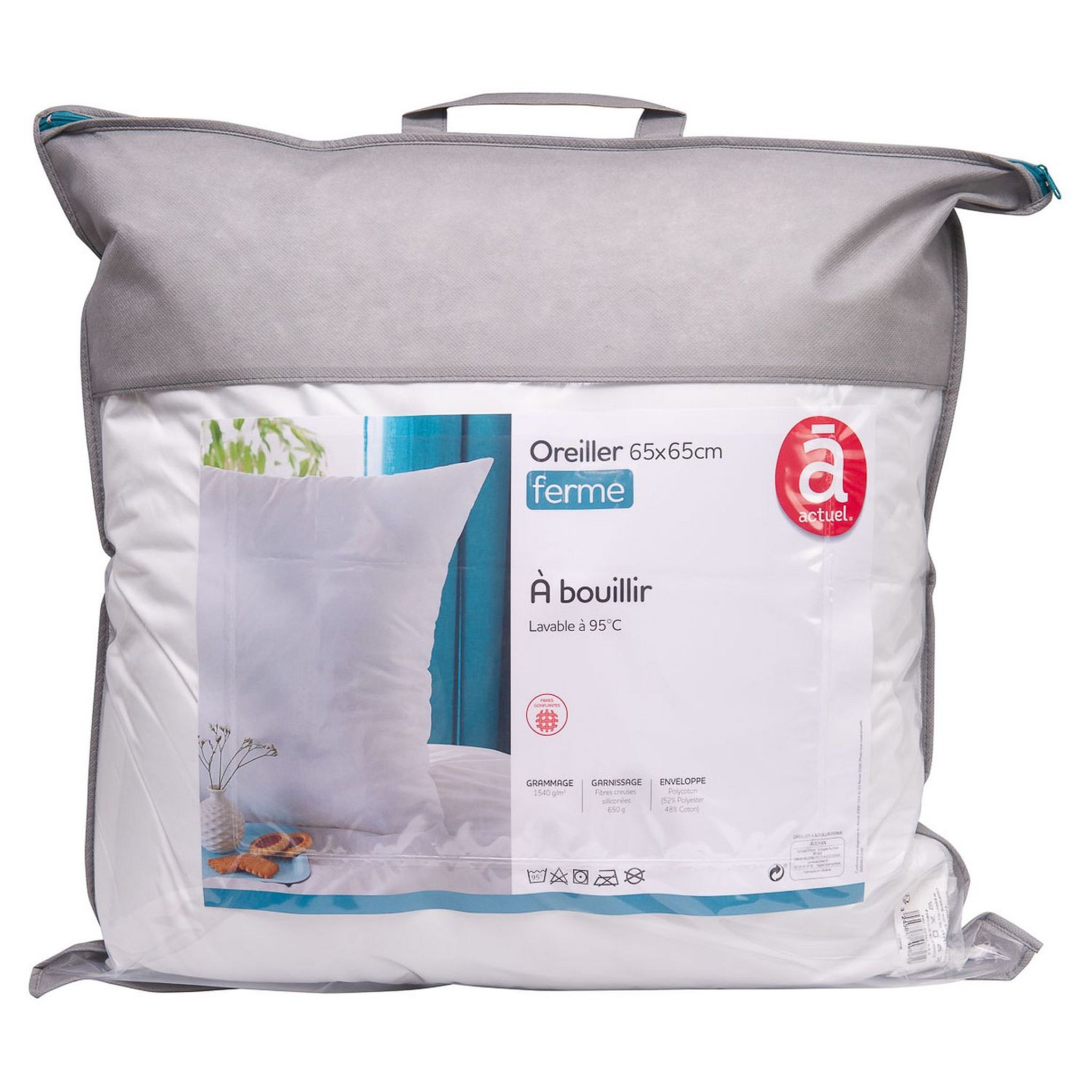Oreiller ferme en polycoton. Lavable à 95°C, hygiène impeccable.