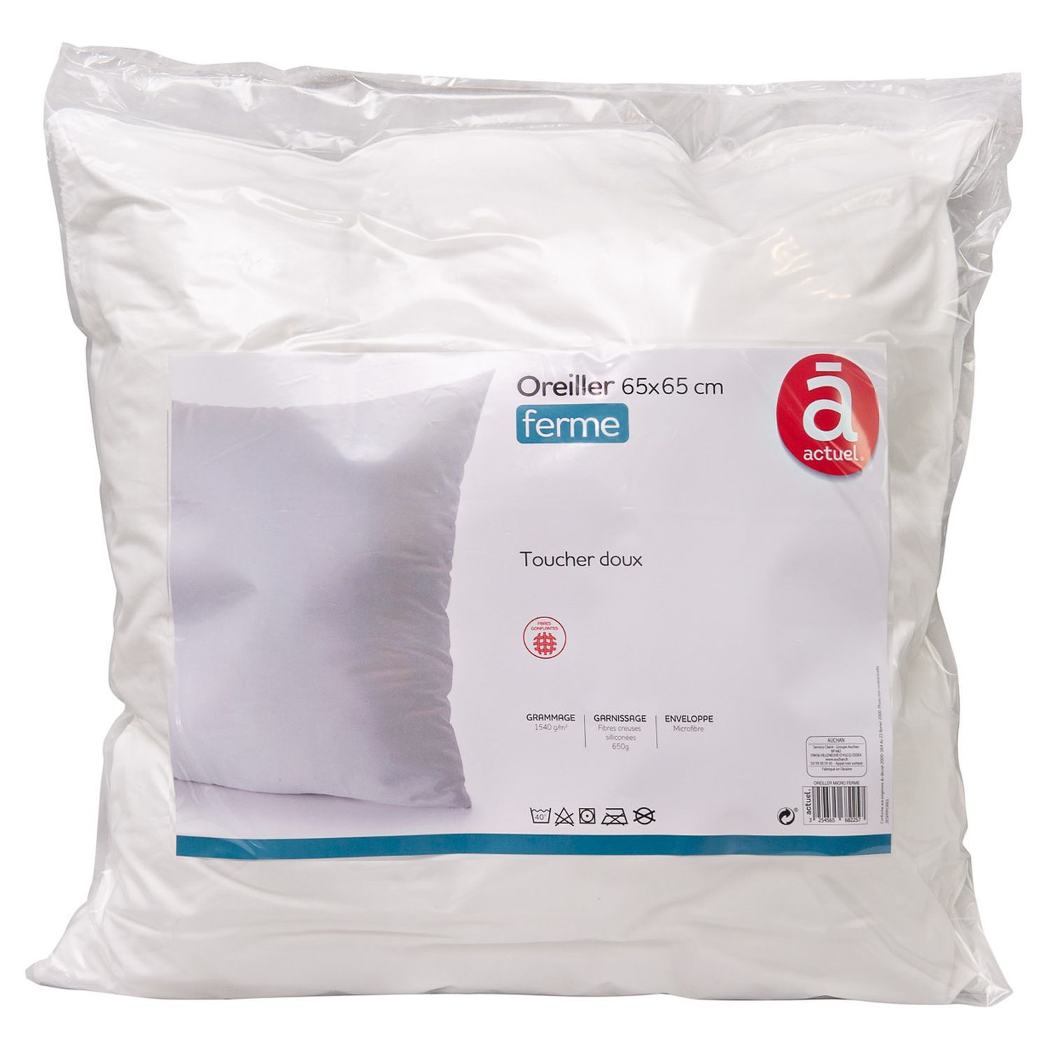 En savoir +Oreiller ferme en microfibre 1540gm2. Toucher ultra doux et garnissage en fibres creuses siliconées !