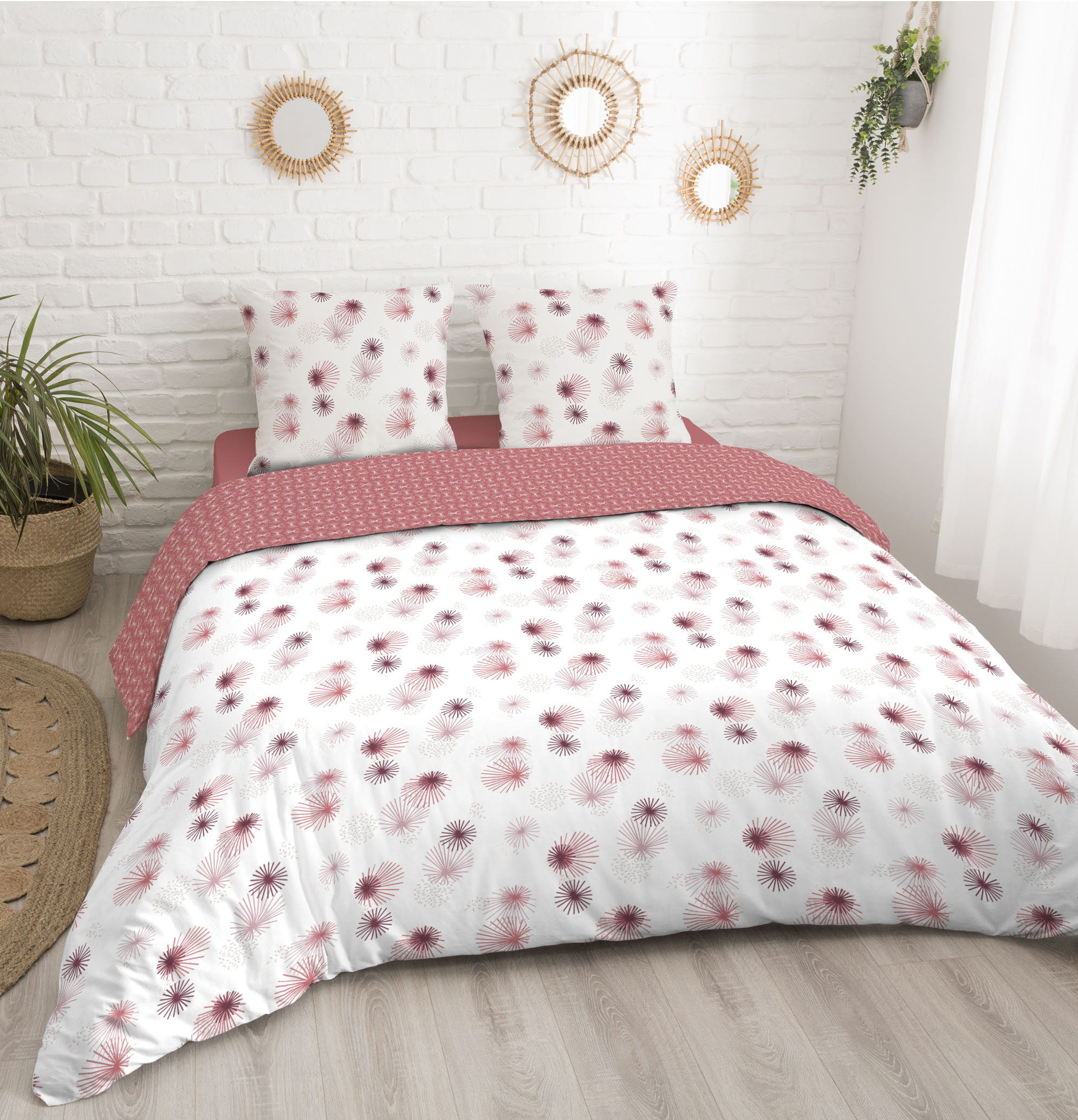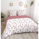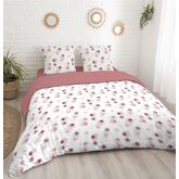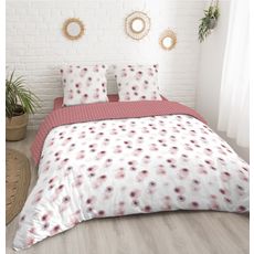 Parure housse de couette en coton 57 fils COMETE dans des tons rosés et blanc. Parure réversible à interchanger en fonction de vos envies ! Le coton 57 fils est très solide et durable dans le temps et s'assouplit au fils des lavages.