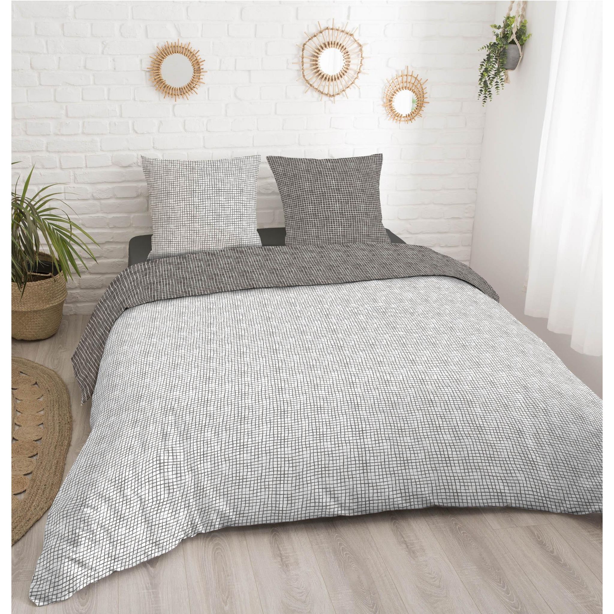 Parure housse de couette en coton 57 fils SAMBA aux motifs quadrillage ! Le coton 57 fils est très solide et durable dans le temps, s'assouplit au fils des lavages. Parure réversible à interchanger en fonction de vos envies !