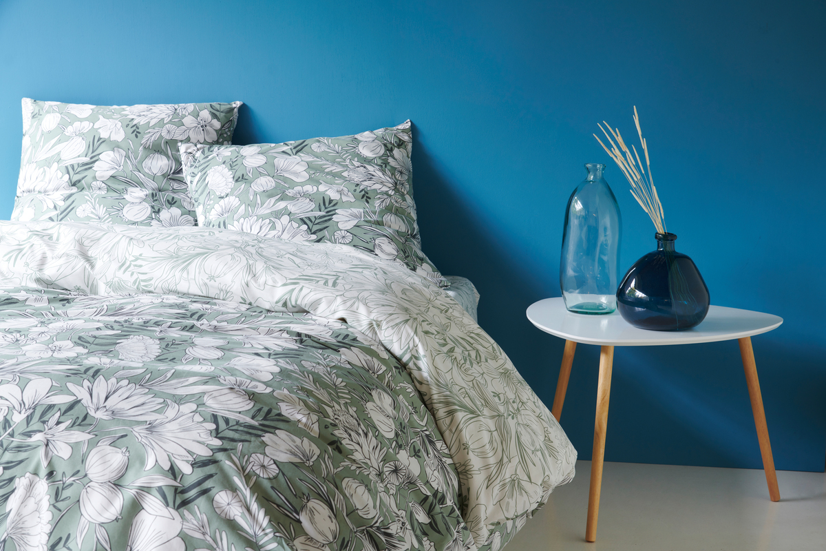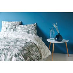 Parure housse de couette (à base droite) + taies d'oreiller en percale pur coton, une toile de qualité supérieure tissée très serré, ultra-fine et douce, qui offre une incomparable sensation de bien-être tout en étant très facile à repasser et résistante à l'usage. On adore ce motif végétal luxuriant au charme intemporel qui apporte une belle touche d'élégance à la chambre, et la réversibilité de la housse de couette pour varier les plaisirs ! Drap-housse percale uni blanc vendu sur notre site.