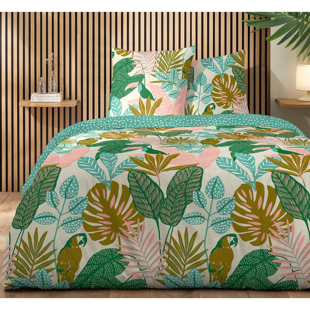 Parure housse de couette en polycoton imprimé TROPIQUE