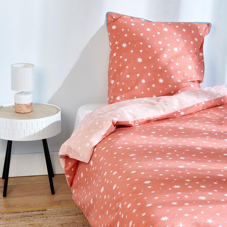 En savoir +Parure housse de couette enfant en coton STARRY NIGHT aux motifs étoilés rose. Parure en coton ultra confortable et durable dans le temps pour des nuits pleines de confort.