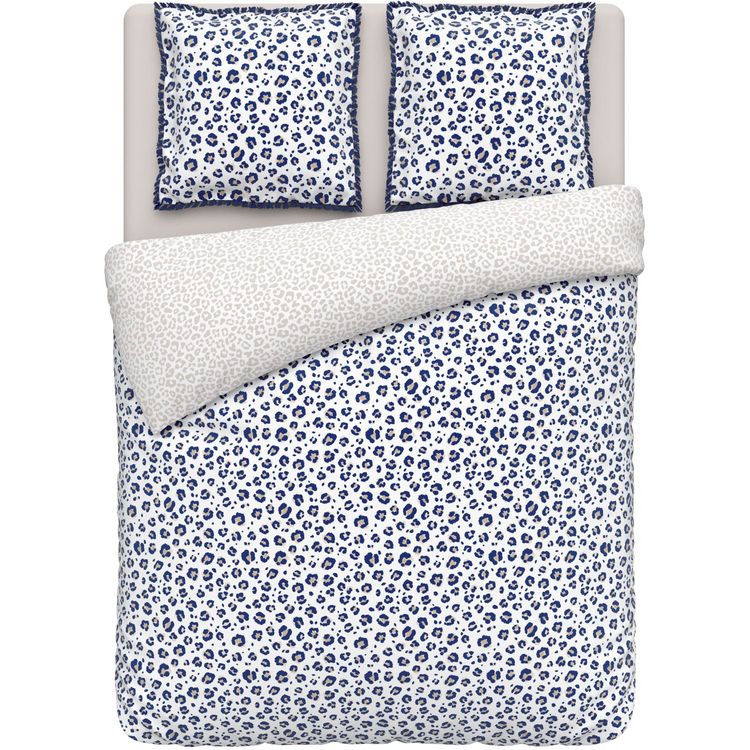 Parure en coton à motifs léopard. Comprend 1 housse de couette + 2 taies d'oreiller. Finitions sur les taies d'oreiller. Un imprimé animal tendance qui saura trouver sa place dans votre chambre.