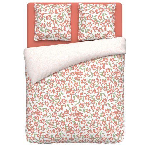 Parure housse de couette 1 ou 2 personne(s) + taie(s) d'oreiller en toile polyester recyclé et coton. Côté look, un tapis de fleurs joyeuses, un vent de charme et de gaieté dans la chambre ! Côté matière, une toile "éco-friendly" douce au toucher, qui sèche vite et ne demande qu'un léger repassage. Un linge de lit de rêve, à adopter les yeux fermés avec le drap-housse coordonné pour que le plaisir soit complet. Housse de couette à base droite boutonnée.