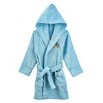 Un peignoir de bain pour enfant en éponge pur coton douce et moelleuse pour s'envelopper de douceur en sortant du bain ou de la douche. Couleur aquatique, broderie ravissante, un adorable peignoir à capuche, à offrir avec la serviette et le drap de bain assortis pour le plaisir de faire plaisir à un