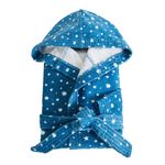Peignoir fantaisie enfant en coton 360 g/m² aux motifs étoilés. Peignoir avec capuche en coton ultra doux, moelleux et absorbant, idéal pour la sortie de douche ou de bain. Existe en 2 coloris : bleu et rose.