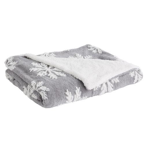 Une face brodée de flocons, une face fausse fourrure de mouton, un plaid qui a tout bon, pile dans la tendance cocooning dont on a tant envie pour l'hiver ! Jolie touche déco sur un fauteuil ou un canapé, c'est aussi le complice des soirées un peu fraîches, qui nous enveloppe de chaleur et de douceu