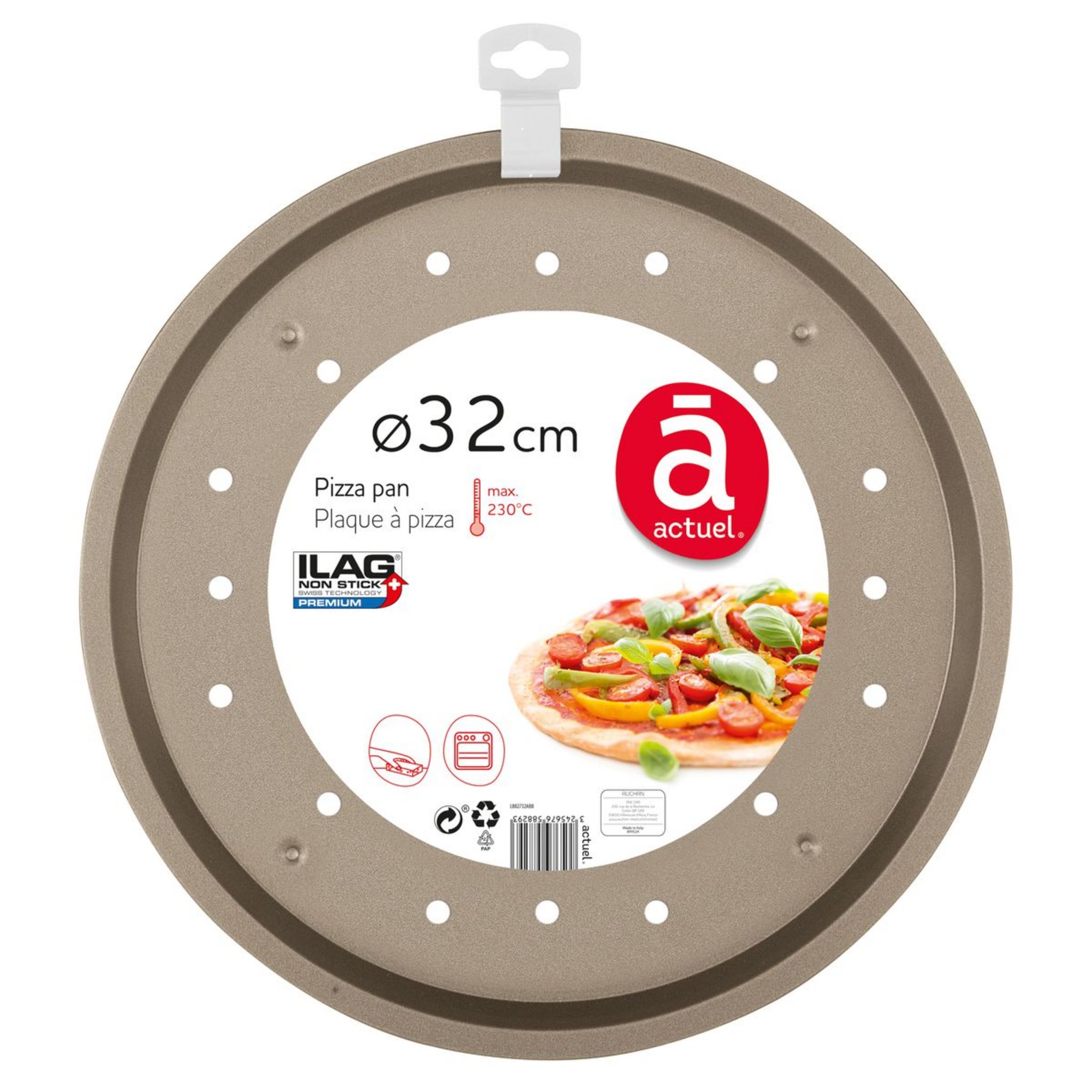 L'indispensable plaque à pizza ! Perforée pour permettre à l'humidité de s'échapper, elle est idéale pour les pizzas surgelées et parfaite aussi pour les frites et chips de légumes ! En acier pour une répartition homogène de la chaleur, avec revêtement intérieur anti-adhésif pour un démoulage et un nettoyage ultra-faciles. Plaque diamètre 32 cm.