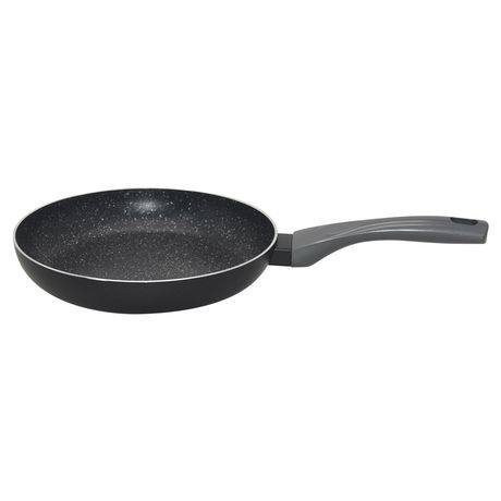 Poêle induction de 24 cm, couleur noir effet pierre. Compatible tous feux dont induction. Revêtement antiadhésif pour une cuisson sans accroc. Fabriquée en aluminium avec poignée fixe pour une manipulation sûre. Parfaite pour saisir et cuisiner divers plats avec facilité.