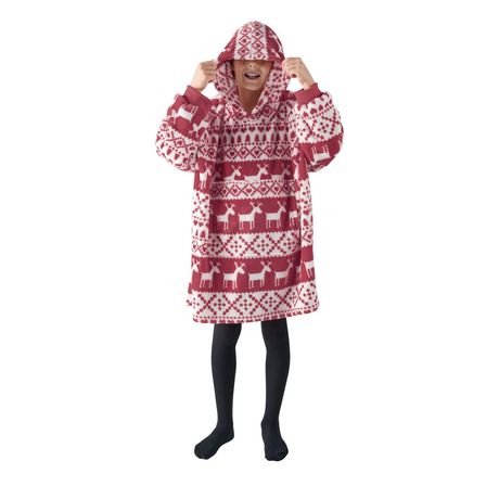 Poncho junior double face flanelle/sherpa imprimé carreaux