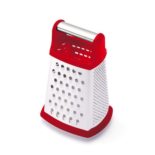 Cette râpe 4 faces en acier inoxydable blanc et rouge vous permettra de râper facilement vos aliments plus ou moins finement grâce à ses 4 variétés de coupe.