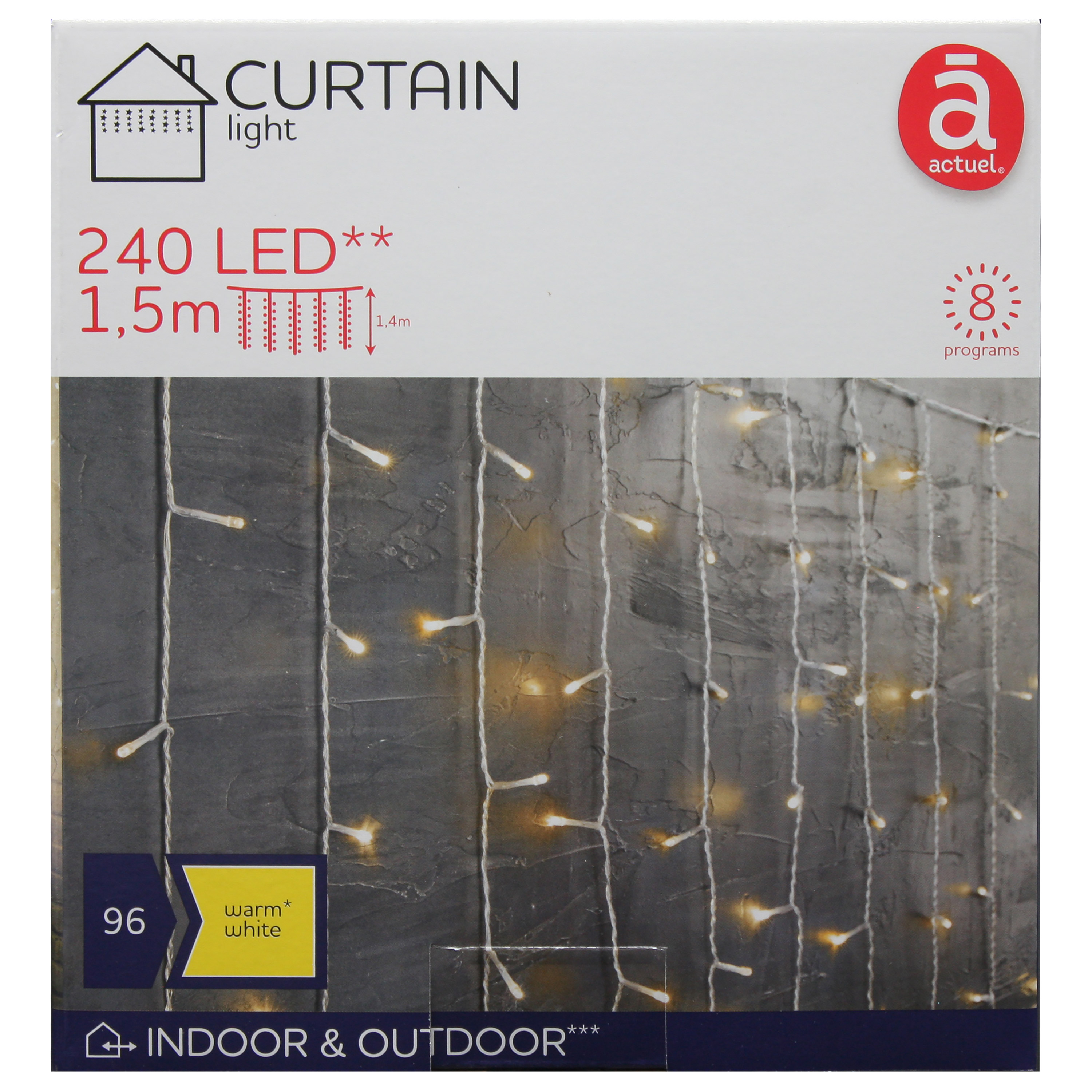 Rideau Lumineux 240 LED Blanc Chaud 8 Programmes