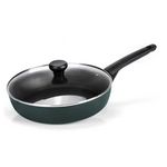 Couleur tendance pour cette sauteuse 28 cm tous feux dont induction avec poignée fixe en bakélite et couvercle en verre. Fabriqué en aluminium 100% recyclé et revêtement intérieur en céramique. Compatible lave-vaisselle.