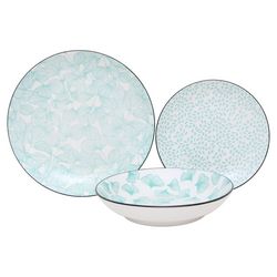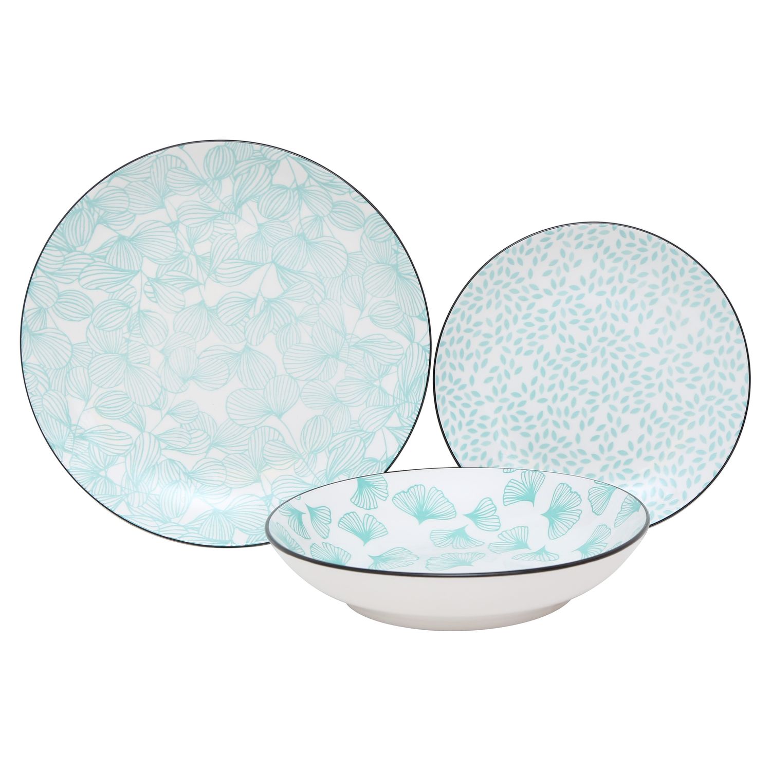 Service d'assiettes de 18 pièces 24/20/19CM porcelaine décor vert