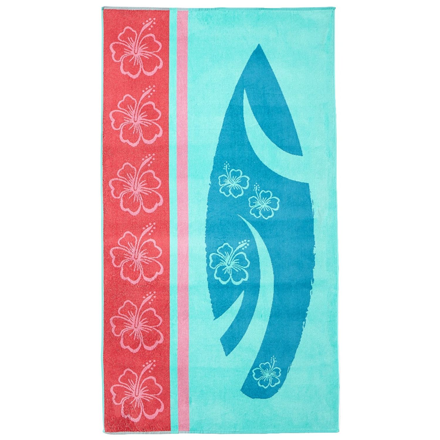 En savoir +Drap de plage en éponge pur coton bouclette imprimée. Une planche de surf, des hibiscus, toute la symbolique chère aux surfeurs... qui fait aussi rêver les non surfeurs ! Une serviette de plage comme on les aime, joyeuse et colorée, une promesse d'évasion !