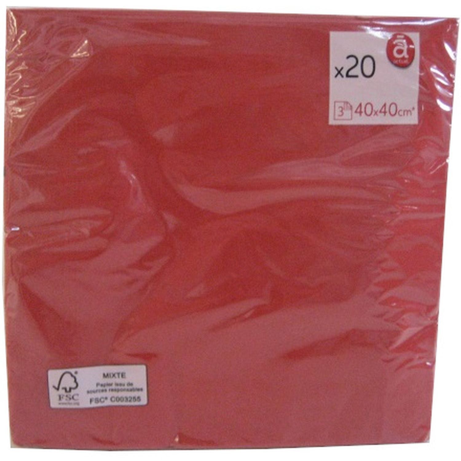 Serviette de table jetable unie rouge 3 plis 40x40cm x20