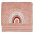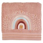 Une serviette de toilette pour enfant en éponge pur coton douce et moelleuse. Couleur délicieuse, broderie ravissante, une serviette "girly" à souhait, à offrir avec le drap de bain et le peignoir assortis pour le plaisir de faire plaisir à une petite princesse !