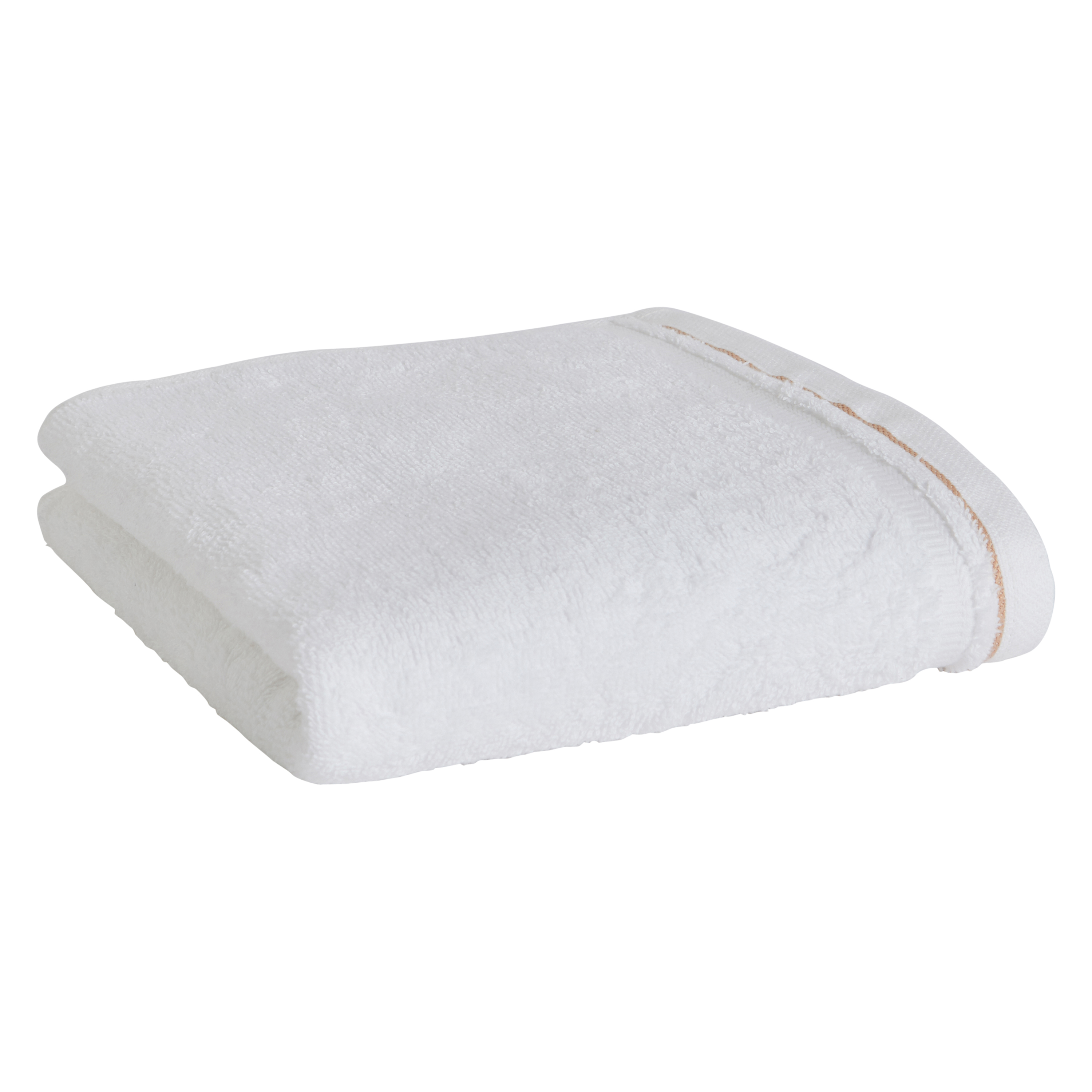 Serviette de toilette unie en coton 450 g/m², ultra douce et absorbante. Son liteau blanc apporte une petite touche d'originalité à votre linge de toilette ! A associer avec les gants de toilette et draps de bain de la même collection.