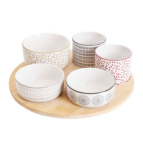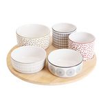 Découvrez notre set apéritif composé de 6 coupelles en porcelaine élégamment disposées sur un plateau en bois. Parfait pour présenter vos amuse-bouche avec style, il allie praticité et design naturel pour vos moments de convivialité.
