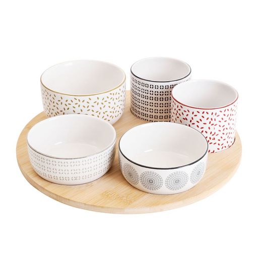 Set apéritif 6 coupelles en porcelaine et plateau bois