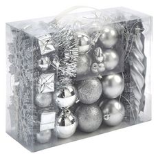 Cet assortiment de décoration de noël est composé de 80 éléments, dans des finitions mats / brillantes / pailletées dans un joli camaïeu de gris argenté pour vous servir de base. A panacher avec d'autres matière et coloris afin de réaliser une déco de noël selon vos envies.