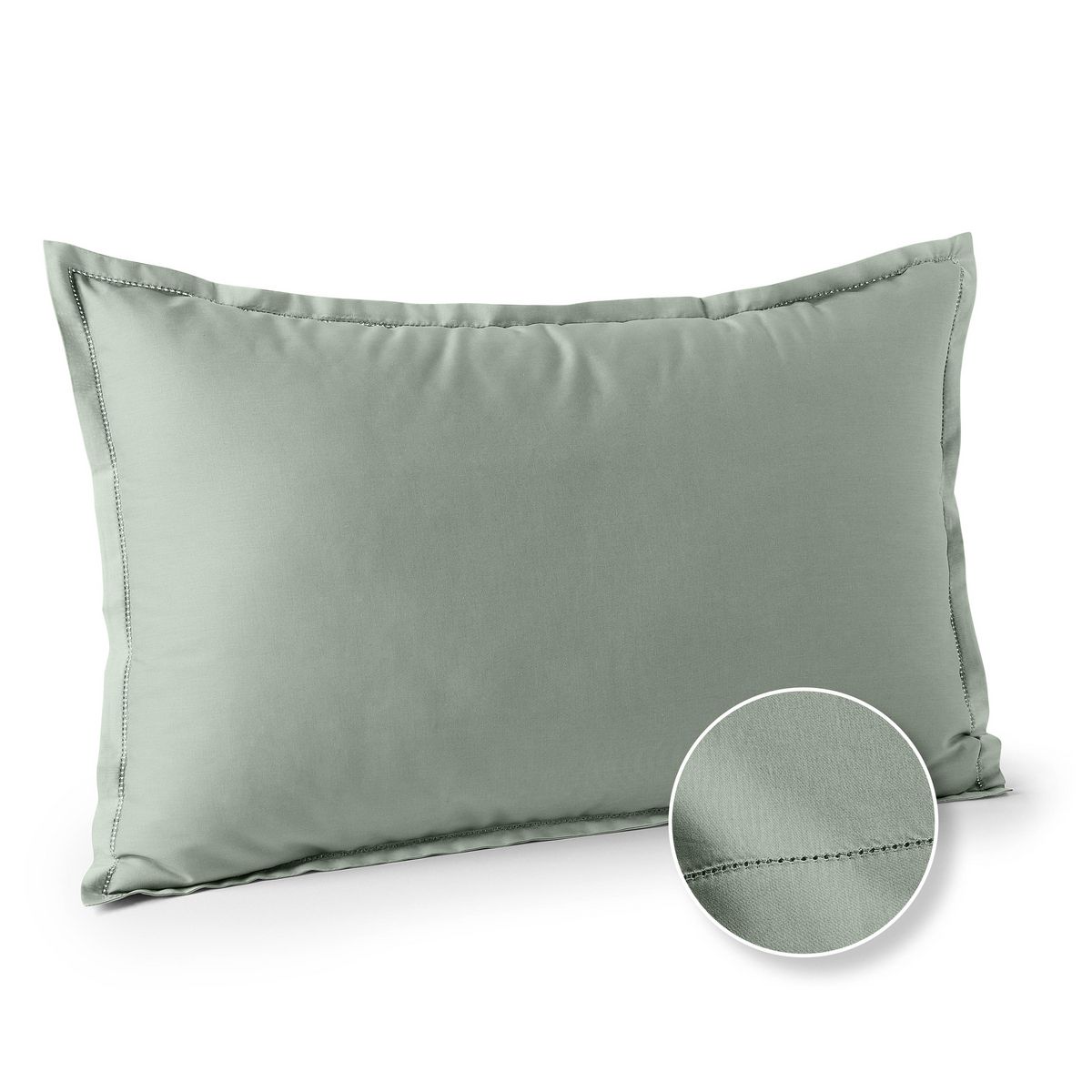 Taie d'oreiller à volant unie en percale. Les volants aux extrémités apportent une touche d'originalité à la simplicité de la taie. 2 tailles et coloris disponibles.