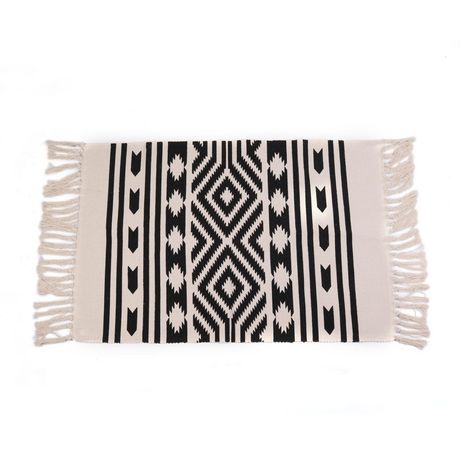 Tapis fantaisie en polycoton motifs aztèques à franges. Idéal pour rajouter la petite touche manquante à votre déco !