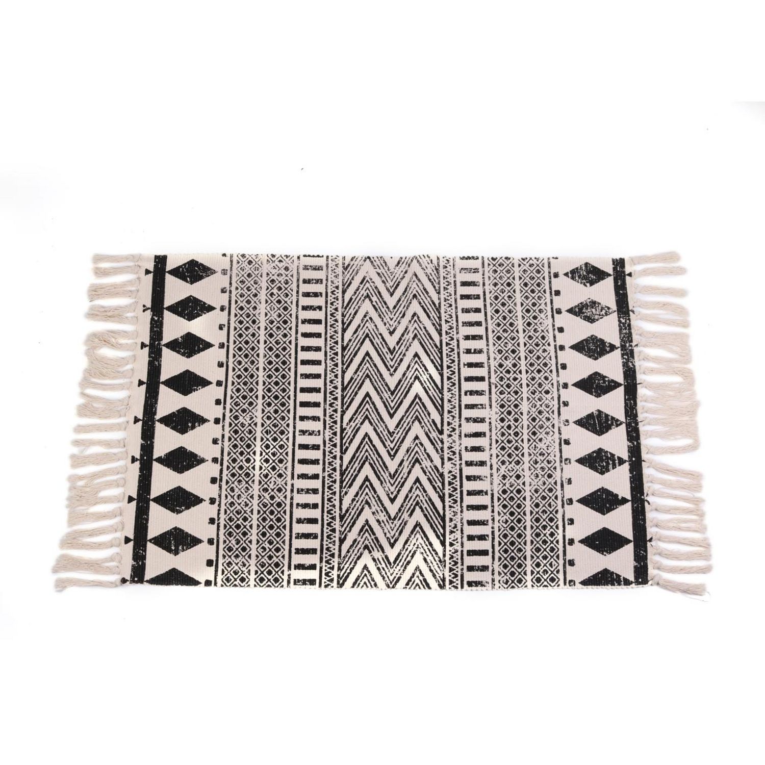 Tapis fantaisie en polycoton motifs ethniques. Ce joli tapis à franges sera votre allié déco !