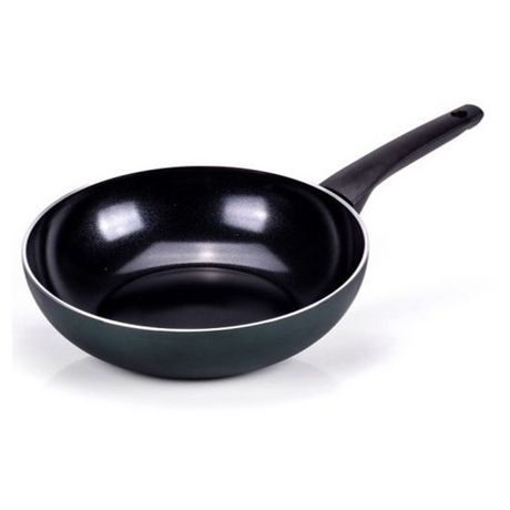 Couleur tendance pour ce wok 28 cm tous feux dont induction avec poignée fixe en bakélite. Fabriqué en aluminium 100% recyclé et revêtement intérieur en céramique. Compatible lave-vaisselle.