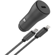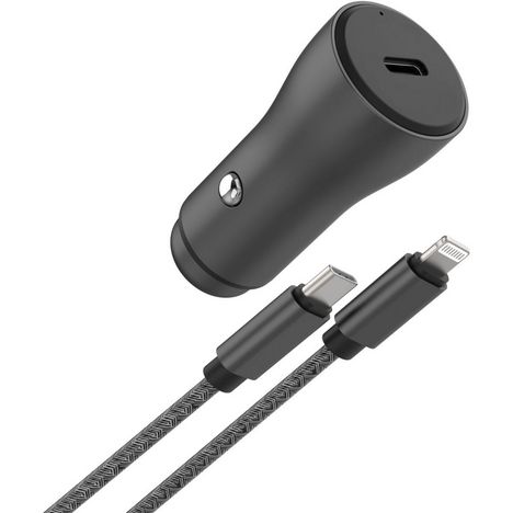 Chargeur allume cigare USB-C 30W + Câble lightning 1M Noir