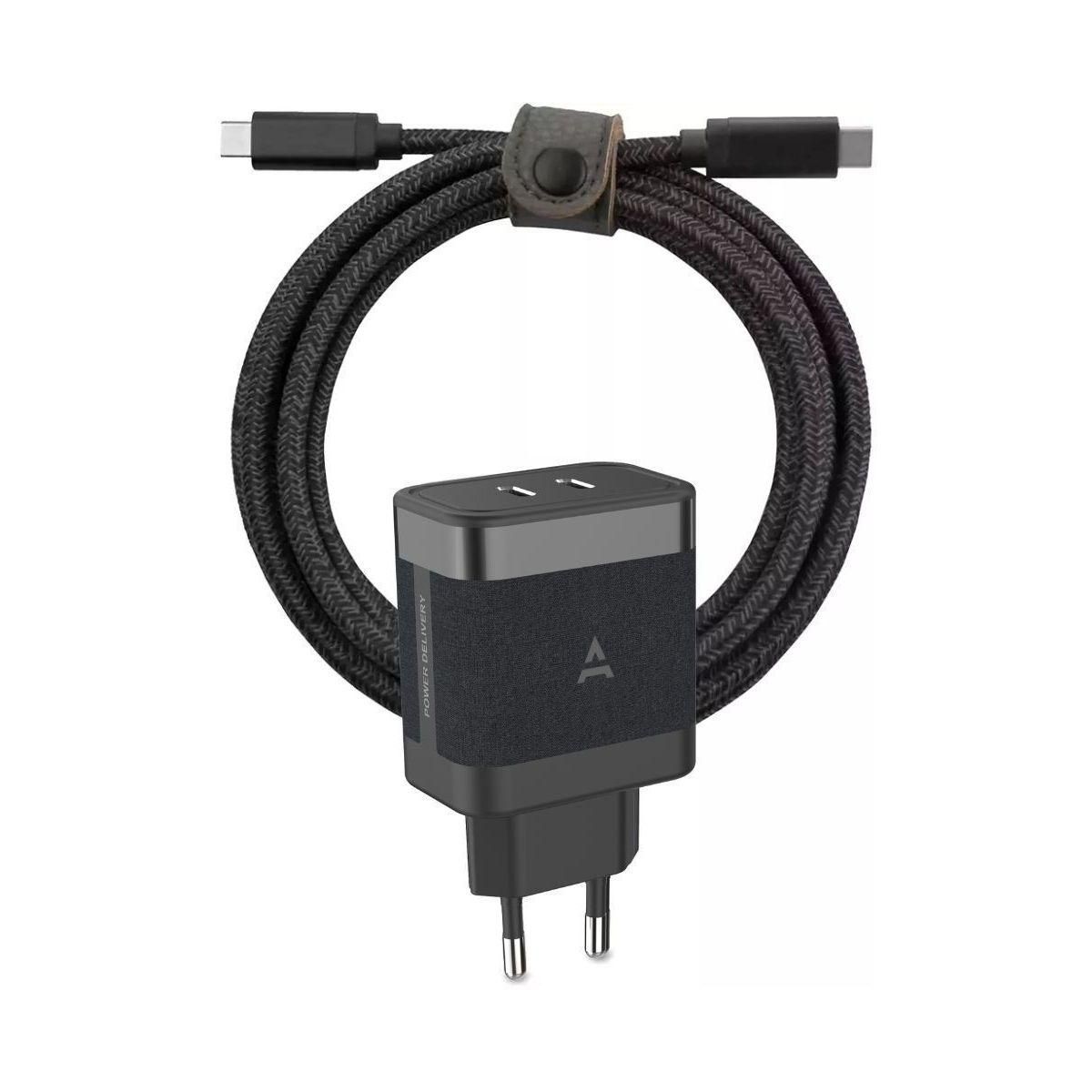 Chargeur + câble 65W 2 USB-C + Câble USB-C 2M - Noir